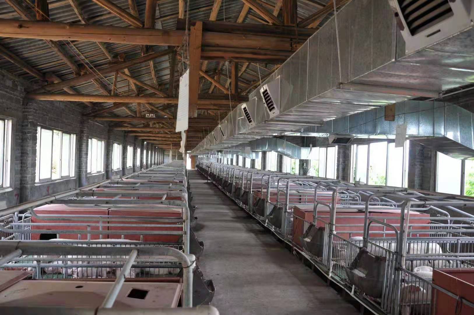 濕簾冷風機管道出風口位置能使溫度降低4-10℃,在設計時只需考慮采取定位送冷風的方式,使風口只對母豬定位欄吹涼風,而對旁邊活動的仔豬則完全不影響,從而達到母豬定點降溫與節能的良好效果。
